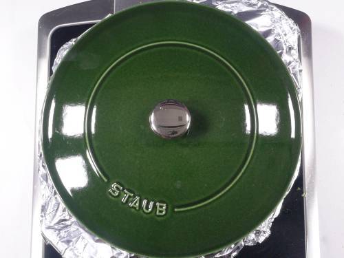 28. Seal the pot with a foil or moist cloth so the steam does not escape. Cover with a heavy lid. Cook this for 2 to 3 mins on a medium heat until the pot is hot, while you heat a griddle or tawa on another burner on a high heat.