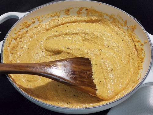 19. The consistency should be slightly runny as it becomes thicker when it cools down.