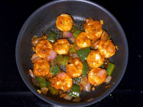 - Make Shrimp manchurian by excluding chili paste and doubling the soya sauce.