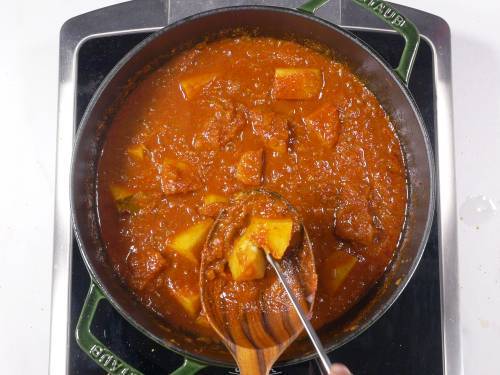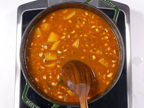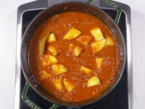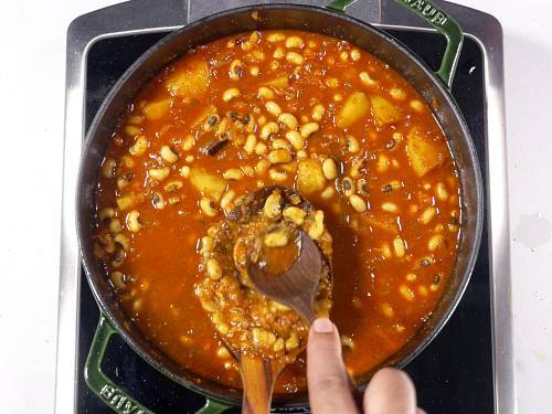 - You can opt to use boiled or parboiled potatoes but note that they won’t soak up the flavors as much as cooking them in the curry. Add them along with the cooked beans.
