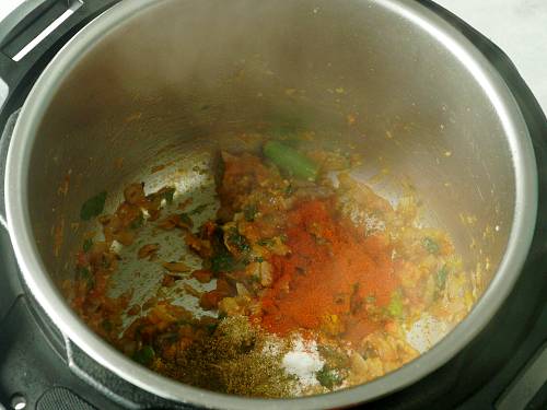 9. Stir in the salt, turmeric, chili powder and garam masala.