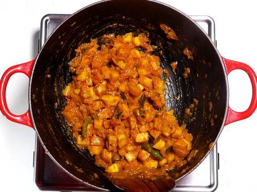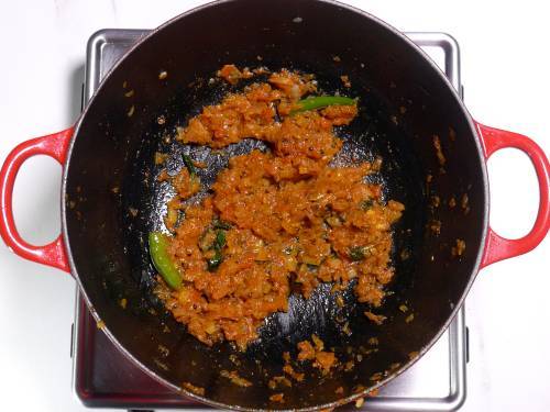 6. Saute well until the onion tomato masala smells good. This takes only a minute.