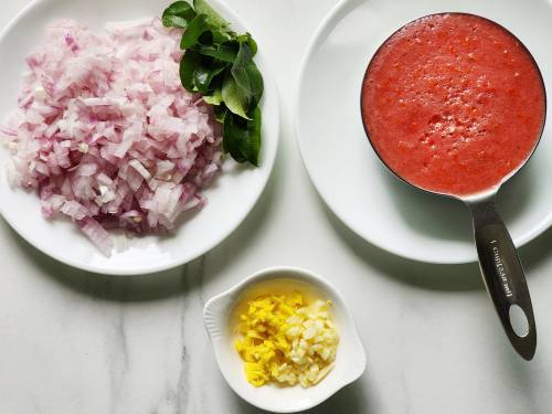 - 1 cup (200 grams, 2 medium) tomatoes (pureed or chopped)