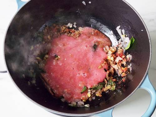 9. Add the tomatoes – chopped/pureed or crushed.