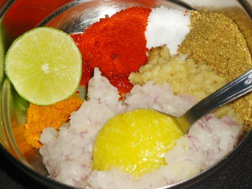- 1 tablespoon red chili powder (Kashmiri for low heat)