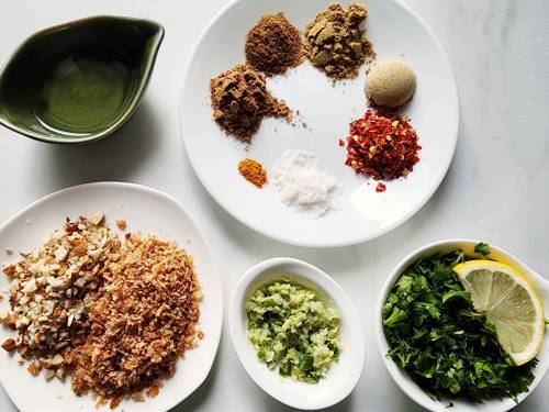 A little amount of oil in the kebab mixture helps to keep the grilled Seekh Kababs juicy and succulent. For an extra flavor we love using a small amount of fried onions and chopped nuts. While the fried onions improve the flavor, nuts impart a great texture.