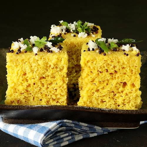 23. Dhokla is another simple and easy to make savory steamed cake made with gram flour, semolina, spices and herbs. My recipe helps you to make fluffy and super spongy khaman. You can also make it ahead and can be easily reheated.