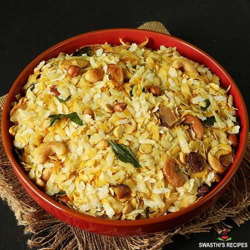 14. Poha Chivda is a Indian style trail mix made using flattened rice or parched rice, nuts and other basic ingredients like spice powders. This post shows how to make chivda in 2 ways – Pan roasting and deep frying.