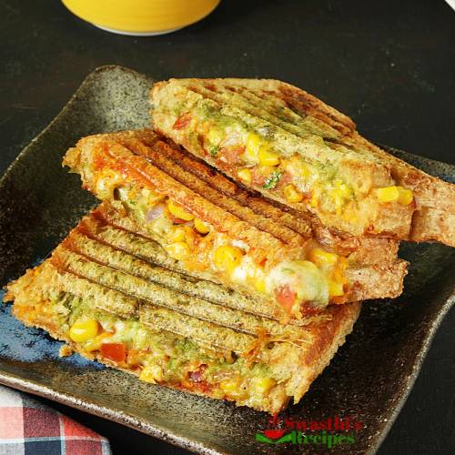 Mumbai Grilled Sandwich is a popular street style sandwich of grilled vegetables and cheese. In this post I also share how to make the sandwich chutney to make these.