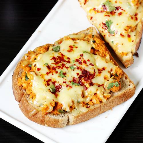 Paneer Cheese Toast is a simple and quick bread snack you can make this Diwali. Spiced paneer bhurji is topped with mozarella cheese.