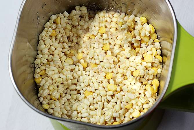 8. Blend to a slightly coarse batter.(not as coarse as semolina/suji)