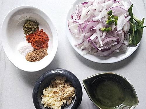 - 2 cups onions (200 grams sliced & layers seperated, 1 medium or 4 small)