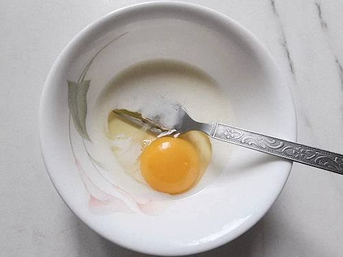 9. Break and egg into a bowl and pour a tbsp milk. Beat until well combined and uniform.