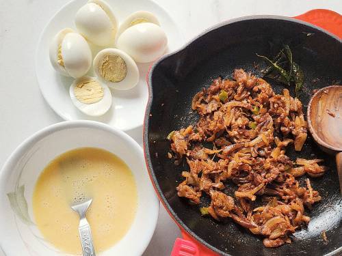 Eggs Puff is one of the many fusion foods that was born in India during the colonial times. Indians soon adapted the French pastry techniques and localised the puffs with spicy caramelized onions and boiled eggs to suit the South Indian palate.