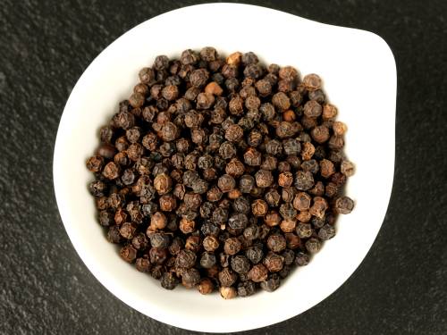Black pepper is a hot, pungent spice that can be used whole or powdered. It is an important ingredient in many spice blends such as garam masala and curry powder. It is used extensively in South Indian dishes where it is used with mustard seeds and curry leaves to add taste and spice to the dish.