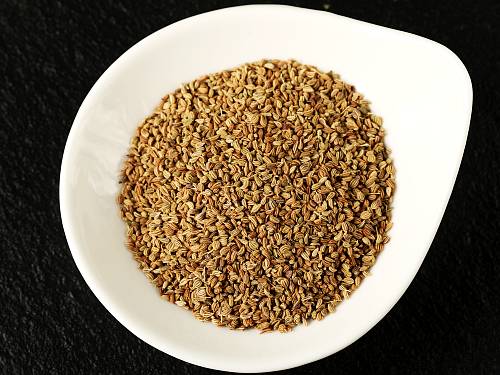 Carom seeds are another spice that aids digestion. It is one of the key spice used in Pakoras. Carom is added to many foods for its intense and sharp taste. It is used in parathas, some beans like chick peas or Kabuli channa, in tomato sauces and gravies, where it adds another dimension of flavor. It has an earthy and sharp taste, so used in minute quantities.