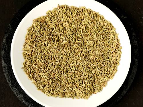Caraway seeds/ black cumin also known as shahjeera, is a smaller version of cumin seed, with a very different flavor profile. It is mildly sweet with a flavor somewhat reminiscent of fennel. It is used with rice, in curries, in soups and stews and blended spice mixes, mostly as a part of tempering.