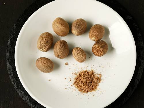 Nutmeg is more popularly used in South Indian dishes because of its warm, nutty, and sharp flavor. It may be used in tea, in some spice blends and sweet dishes.