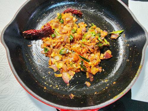 - Sometimes I add white coconut chutney (left from the morning breakfast) and that works very well. I omit green chilies in that case.