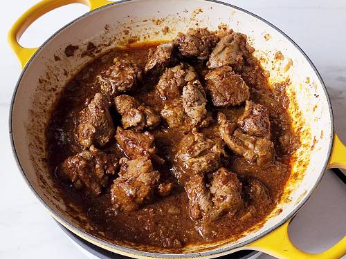 Another delicious recipe from your website. I used 2 pounds bone-in goat, tripled the chilies and kept everything else same. Turned out excellent.