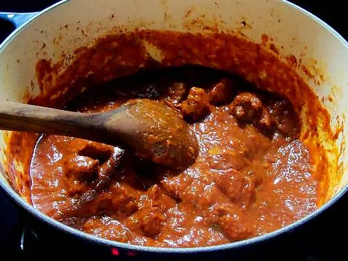 - Stir in tamarind and sugar. Taste test to adjust salt, curry powder & garam masala to your preference. Lamb madras should be hot, spicy and tangy.