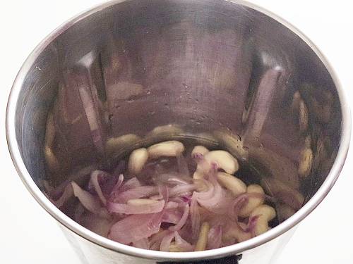 - Transfer the onion cashew puree along with water. Bring it to a gentle boil on a medium heat. Cover partially and cook on a low heat, for 12 to 13 minutes, until the raw flavor of onions is completely gone. (Keep stirring every 5 mins.)