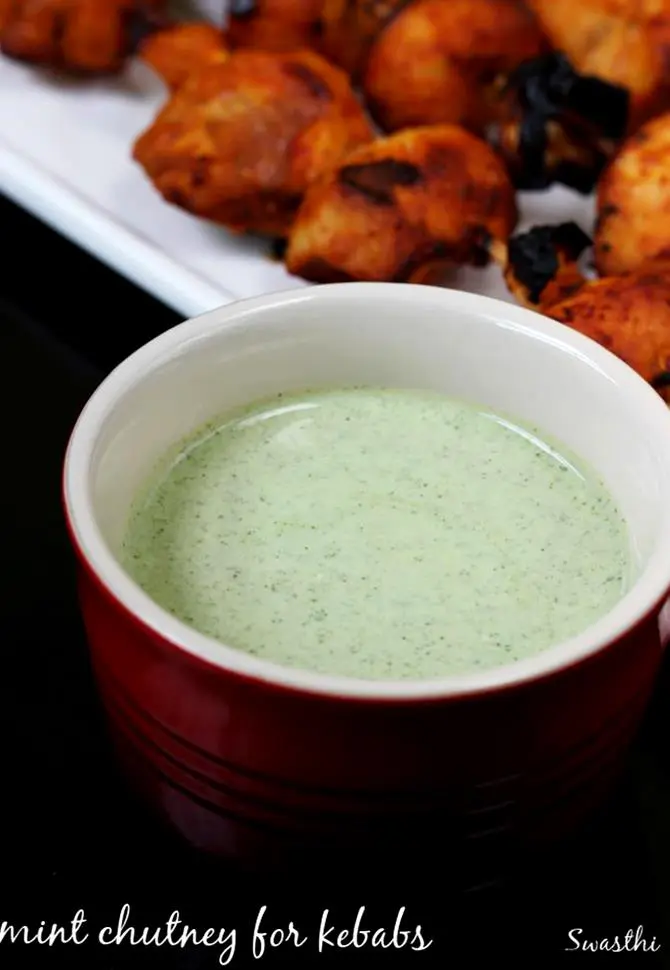 The popular tikkas and Kebabs served in Indian restaurants are always accompanied with this delicious mint raita chutney.