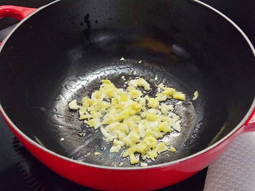 - Heat half of the oil or ghee in a pot. Add ginger and garlic. Saute for 1 to 2 mins until aromatic.