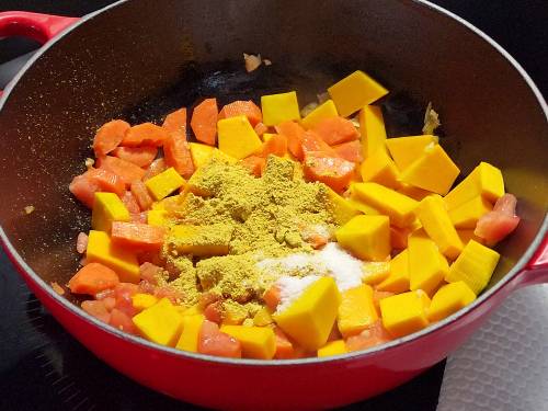 - 1 cup pumpkin cut to 1 inch (or use green beans, sweet potatoes or potatoes)