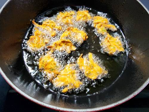 - It is essential to draw out the moisture from onions before making the batter. Else your batter will become runny while it is waiting to be fried.