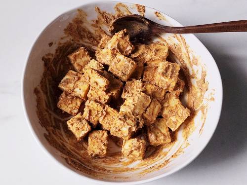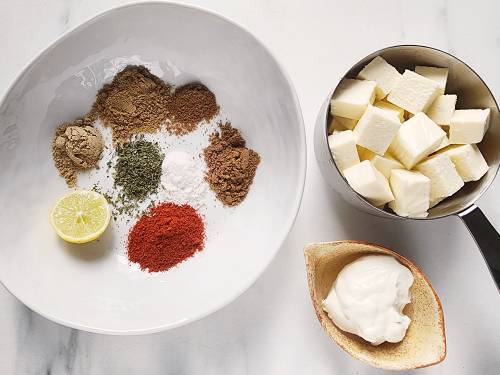 - Add the paneer to the marinade. Mix well and rest until you prepare the rest. You can marinate this up to 24 hours in the refrigerator.