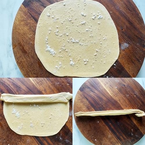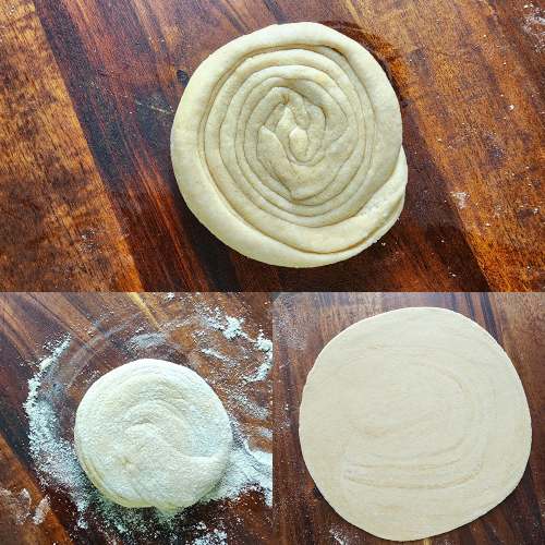 5. Tuck the other end to the center (top or bottom) and flatten the disc with your fingers.