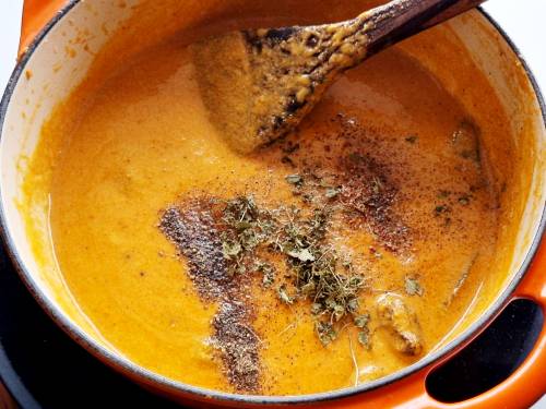 16. Meanwhile check the gravy, it should turn thick and creamy.
