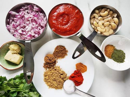 - Aromatics: Onions, tomatoes, ginger & garlic form the basis of the tikka masala.